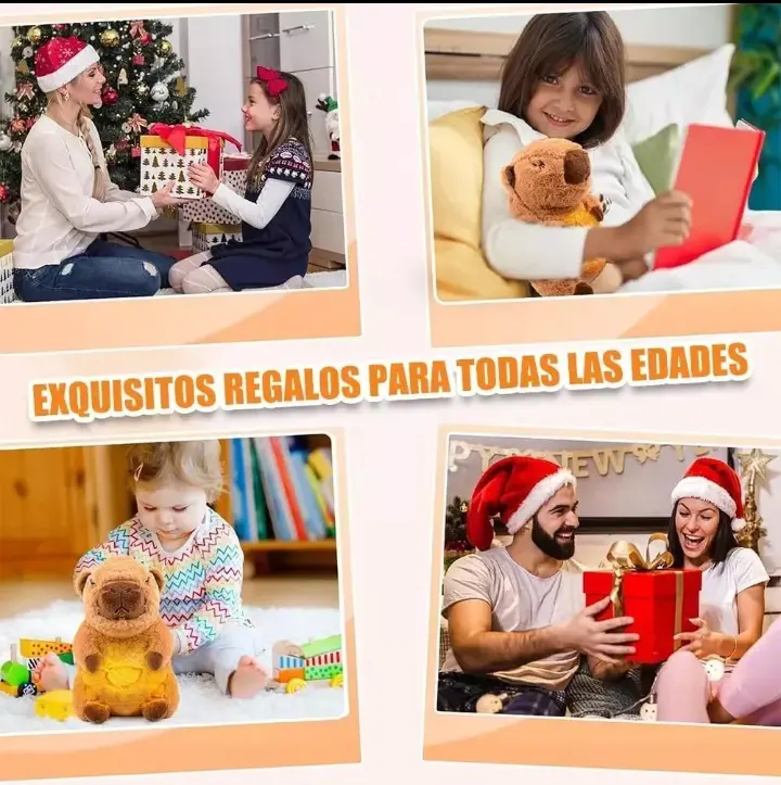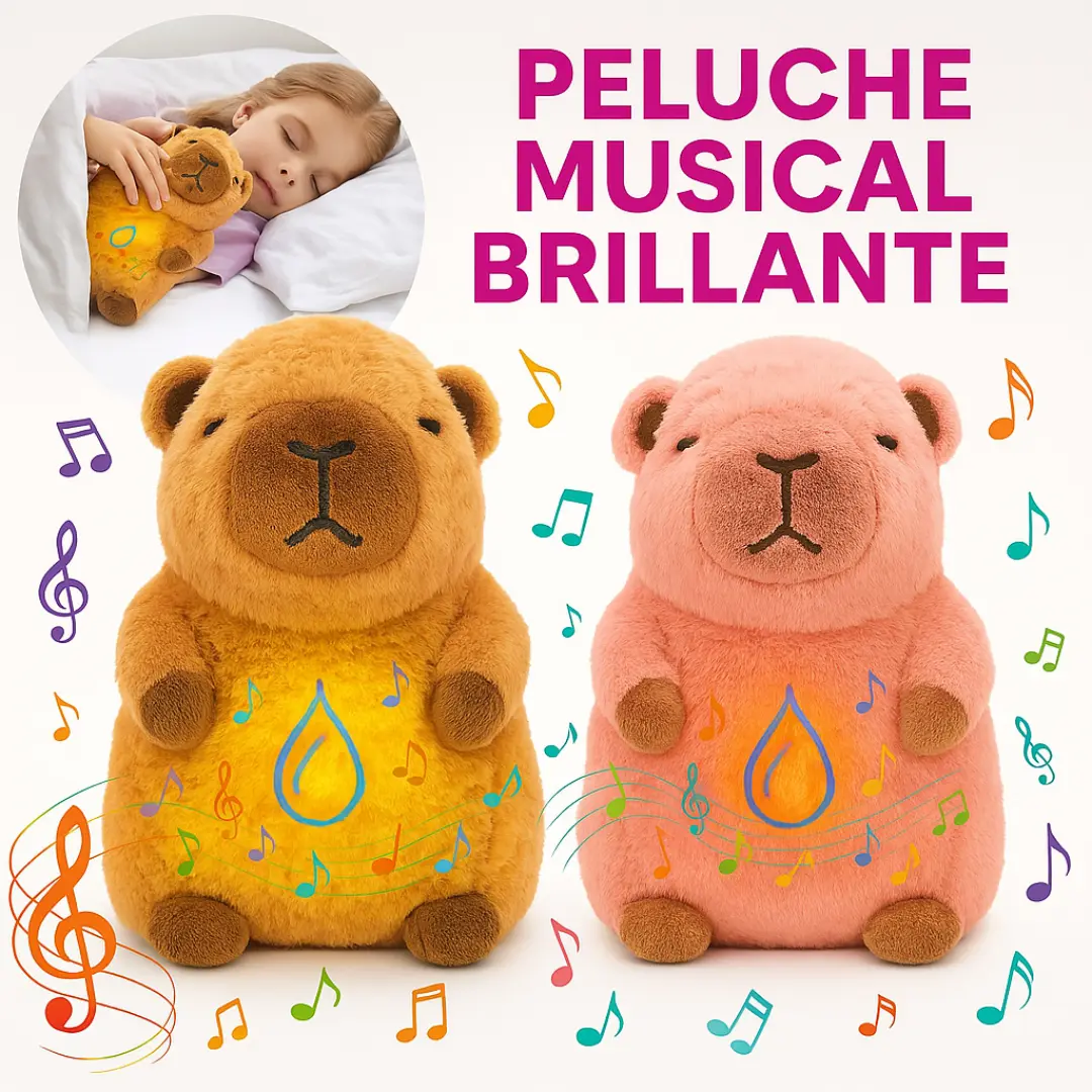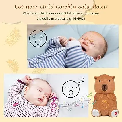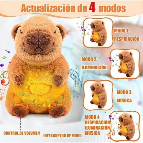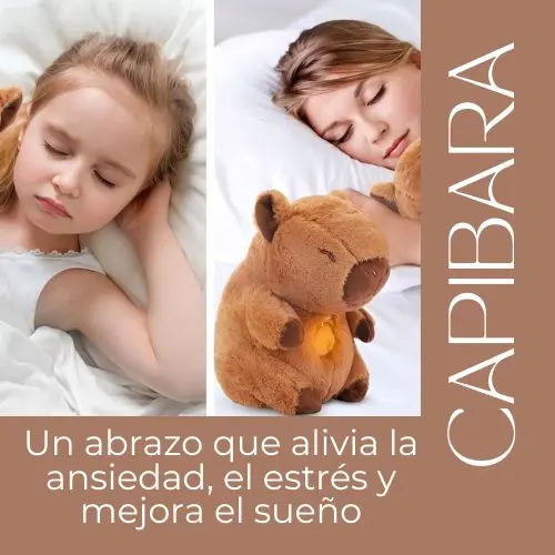 ? El Peluche Capibara Musical que Respira simula una respiración real y reproduce música relajante para brindar calma, seguridad y un descanso profundo.